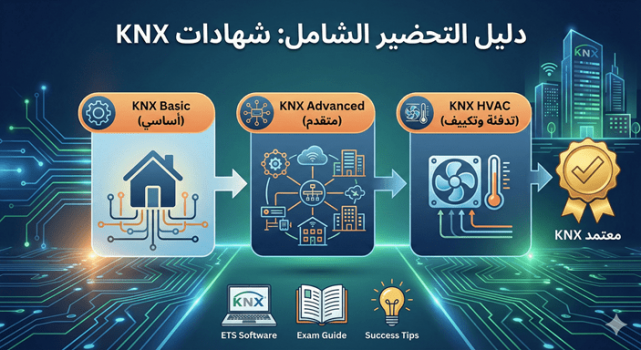 هذا الدليل الشامل يجمع كل ما تحتاجه للتحضير لاختبارات KNX الأساسية والمتقدمة وHVAC في مكان واحد.